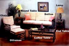 Item Code FR0024 Materials used : Rattan Description: - Armchair - Coffee Table - End Table - Settee