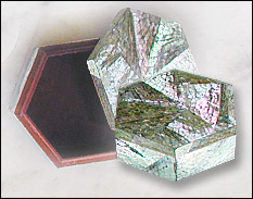Hexagonal box covered with Green Abalon shell